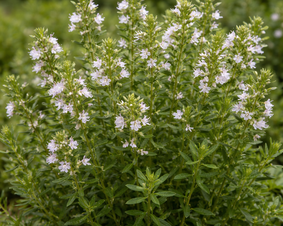 Elle est également appréciée pour ses bienfaits sur la digestion, aidant à réduire les ballonnements, les fermentations et les inconforts digestifs. Grâce à son action tonifiante, purifiante et digestive, la Sarriette accompagne efficacement le bien-être général, la clarté digestive et le maintien d’une énergie stable.