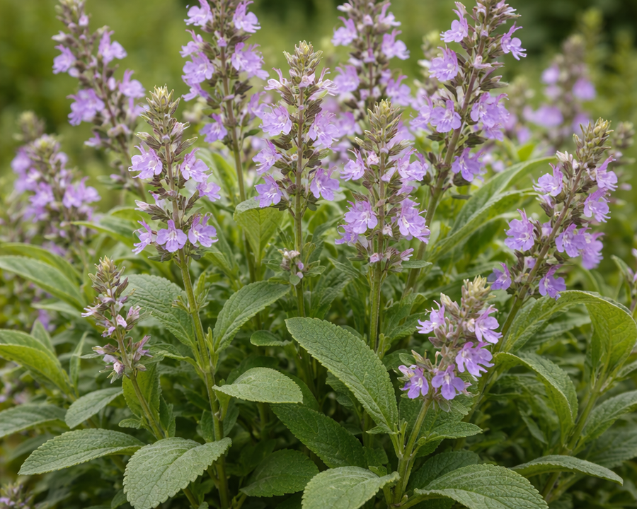 La Sauge est une plante reconnue pour ses effets bénéfiques sur le bien-être hormonal, notamment lors de la ménopause, grâce à ses composés naturels qui contribuent à réduire les bouffées de chaleur et à stabiliser l’équilibre interne. Elle est également appréciée pour ses propriétés digestives, aidant à soulager les ballonnements et les inconforts après les repas.